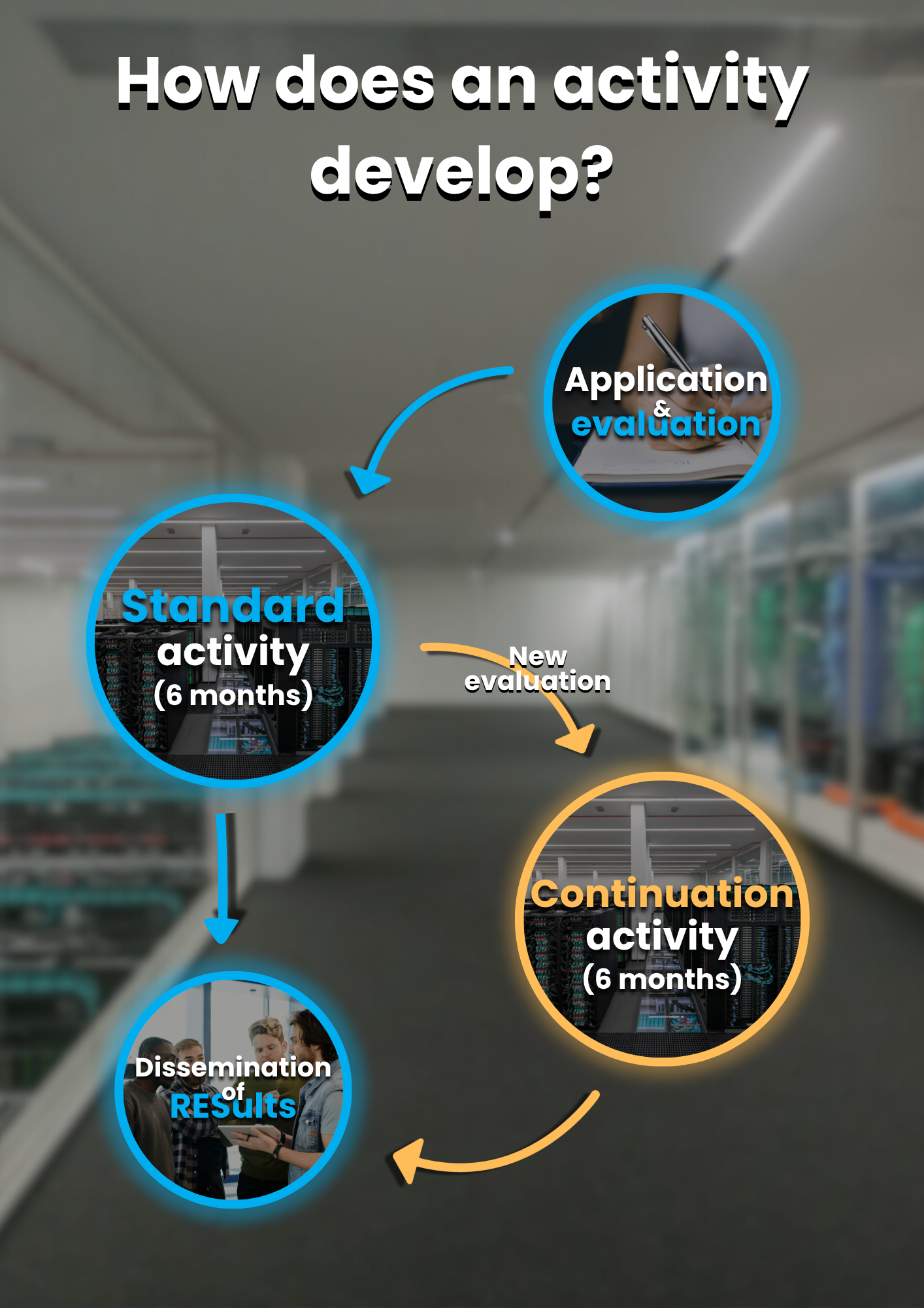 HPC and AI activities have a duration of 6 months, so the calls are bi-annual: